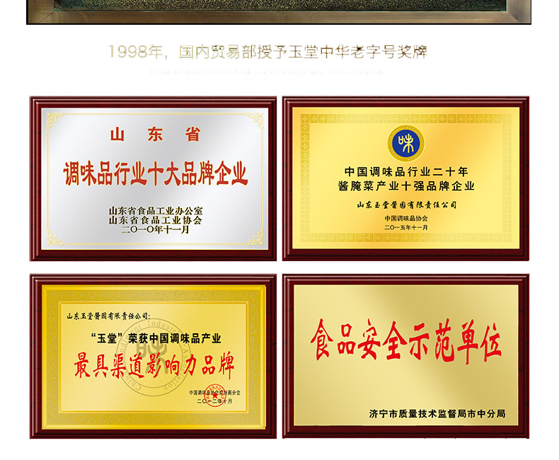 产品特色 采用先进发酵工艺,具有炒菜不粘锅的特性,不管烹煮炸炒,早放晚放,都不粘锅,且营养丰富,更易吸收,有烧肉颜色好,炒菜味道鲜的特色,特别适合家庭和餐饮使用。 公司名称: 山东玉堂酱园有限责任公司 公司地址: 济宁市任城区济邹路1号 服务热线: 400-6900-008 QQ: 416904816 邮箱: yutang300@126.com 网址: www.yutang.com.cn